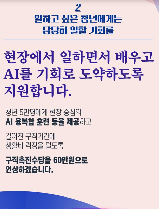이런 현실을 바꾸기 위해 정부는 이번 정책에서 청년 5만 명에게 현장 중심의 직무 훈련을 제공하겠다고 밝혔습니다.