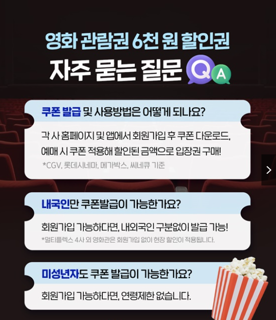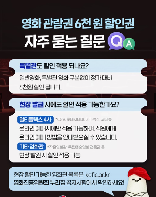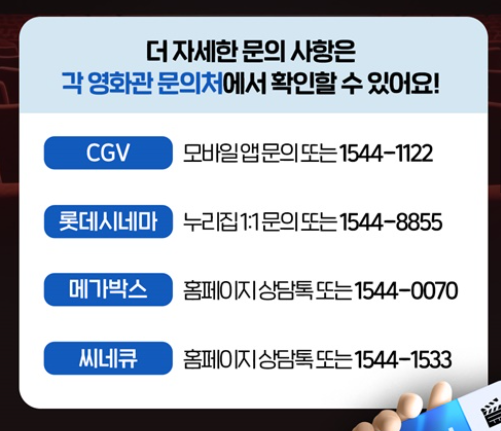 - 이용 가능 영화관 앱/웹사이트: CGV, 롯데시네마, 메가박스, 씨네Q