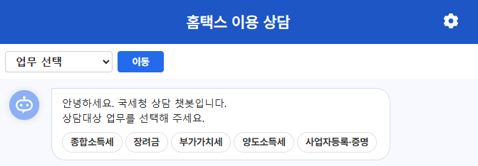 조금 더 자세한 궁금증은 홈텍스 챗봇을 이용해보세요.